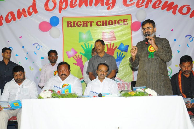 At the grand opening ceremony of Right Choice Academy, renowned motivational speaker Akella Raghavendra delivered an inspiring address to a large and enthusiastic gathering.